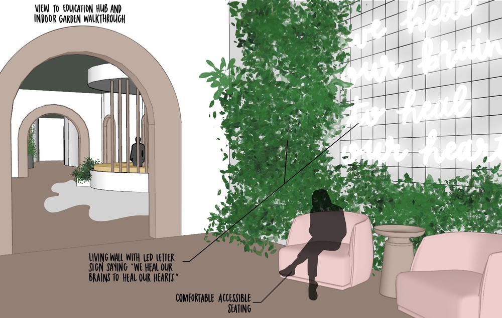 The purpose project is to create a center for sexual assault victims who may be struggling with PTSD among other things relating to the abuse. Creating a space that not only offers a vast amount of therapy options and access to law enforcement if necessary but also calming spaces that are “trigger-friendly” for when victims feel overwhelmed by stressful flashbacks and triggers.