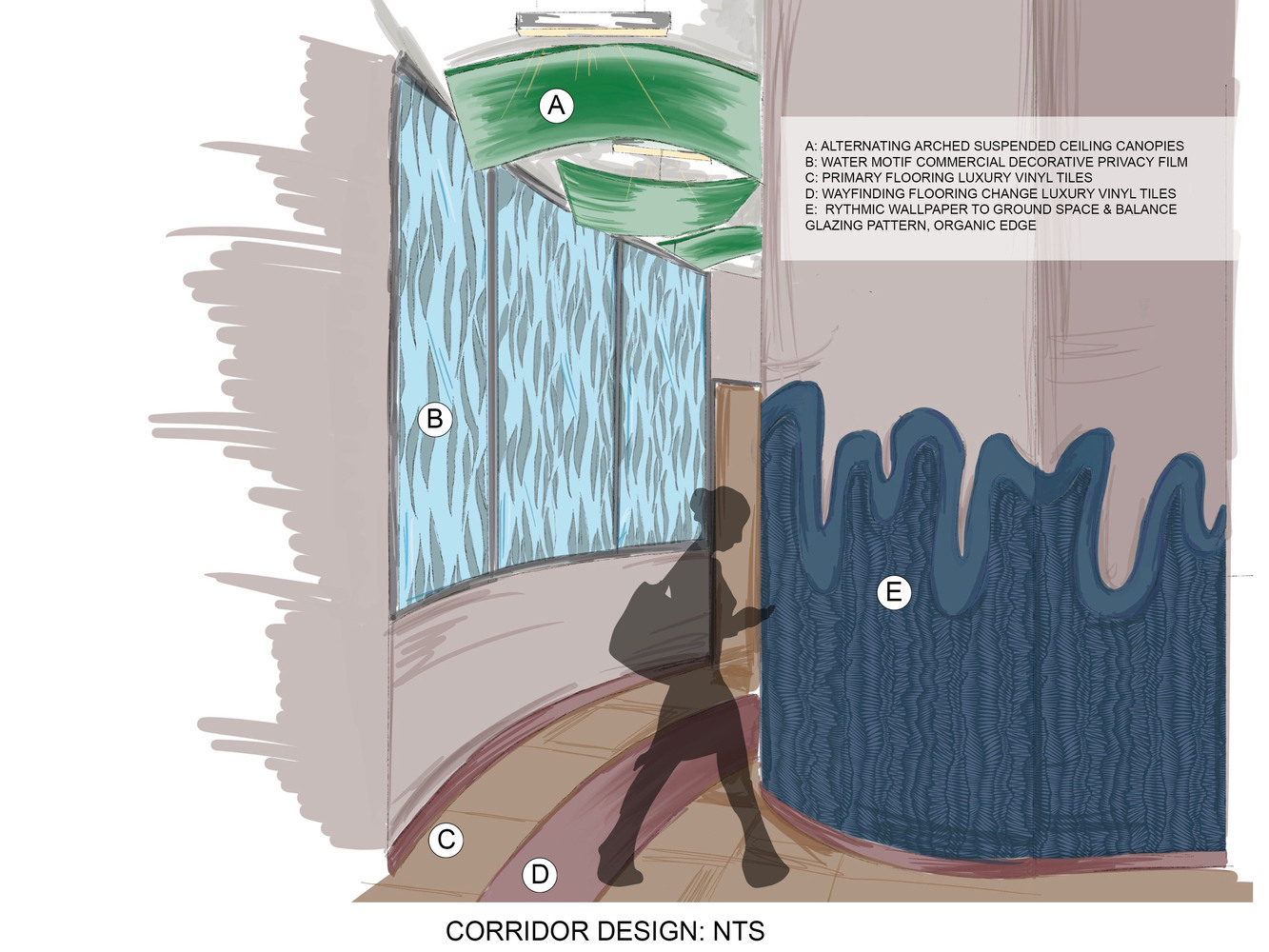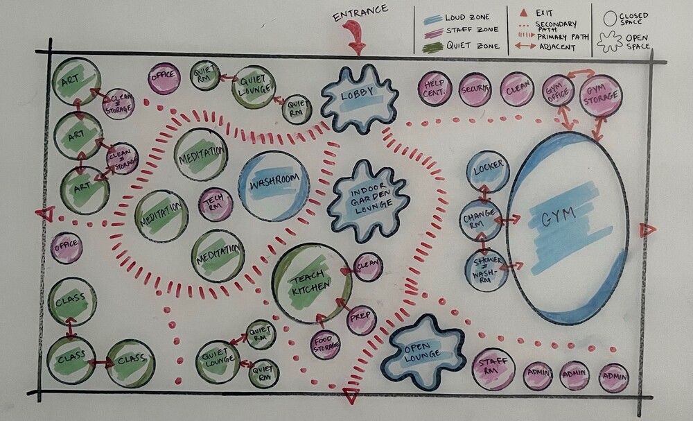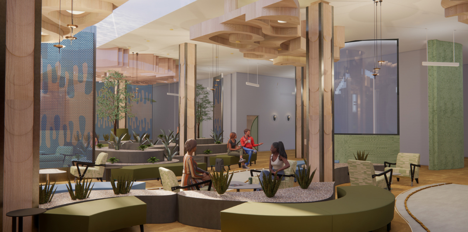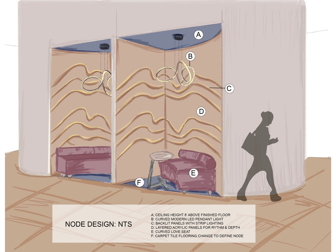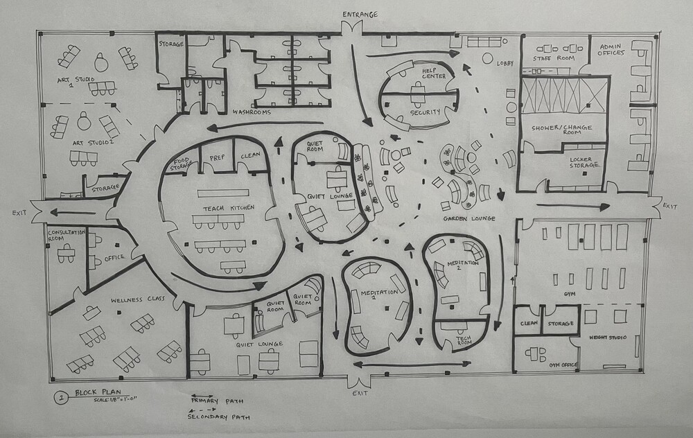 This project focuses on Post-Pandemic design for students to make the transition period into society seamless. It offers an in-depth look at how students’ mental health and wellness can be affected by the built environment. The problem being addressed is how to create an environment that will not facilitate stress or pressure for the user. The wellness strategies are focused on both the mind and the body, which takes a well-rounded approach. The methodology used was qualitative data to examine how individuals were impacted in isolation and their preferences in the learning environment. The qualitative data was collected through a two-part online survey. The results concluded that most participants had a negative experience in isolation. However, some positive takeaways were highlighted such as flexibility and lack of commute. Students preferred learning environments that were collaborative but still structured. This study intends to direct designers to be deliberate about how the spaces will affect others. It will provide designers with a deeper understanding of how to set up spaces after traumatic events and contributes to pandemic recovery research which is limited. Designers should consider the following when designing for pandemic reintegration design: biophilic elements, flexibility, contrasting zones, creating familiarity, and considering group and individual spaces.